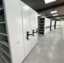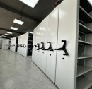 Мы спроектировали и произвели передвижные стеллажи серии Л, специально адаптированные под полукруглую форму помещения. Стеллажи были расположены вдоль стены, повторяя изгиб, и разделены на несколько рядов с разным количеством секций.