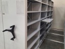 Изготовили полочные передвижные шкафы на рельсах с замковыми механизмами. Доступ возможен только через крайние стеллажи с замками и распашными дверями, что защищает хранимое от несанкционированного доступа, пыли и света. Для удобства работы дополнительно добавили выдвижные полки и архивную тележку.
