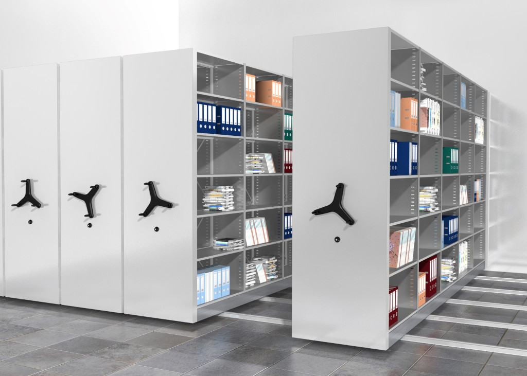 Усиленная рама делает возможным применение в качестве каркасной части не только архивных стеллажей, но и конструкций для склада, для хранения картин, музейных экспонатов. На данной раме реализуется вариант конструкции стеллажей с электроприводом.