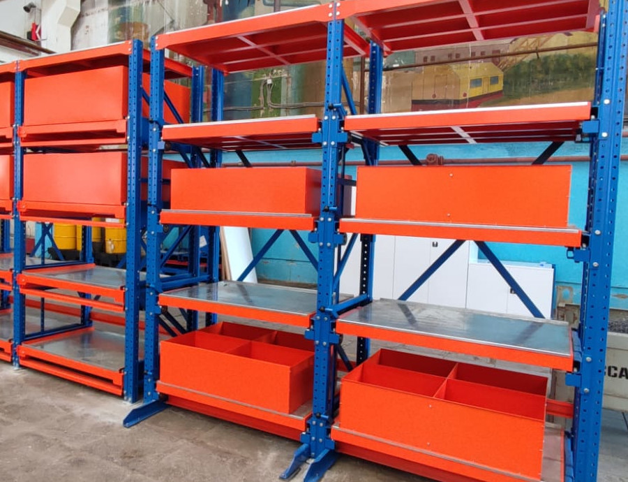 Отправьте заявку, чтобы узнать цену на изготовление стеллажей с выдвижными лотками на заказ по индивидуальным размерам с доставкой с завода производителя по городам Оренбургской области и России.
